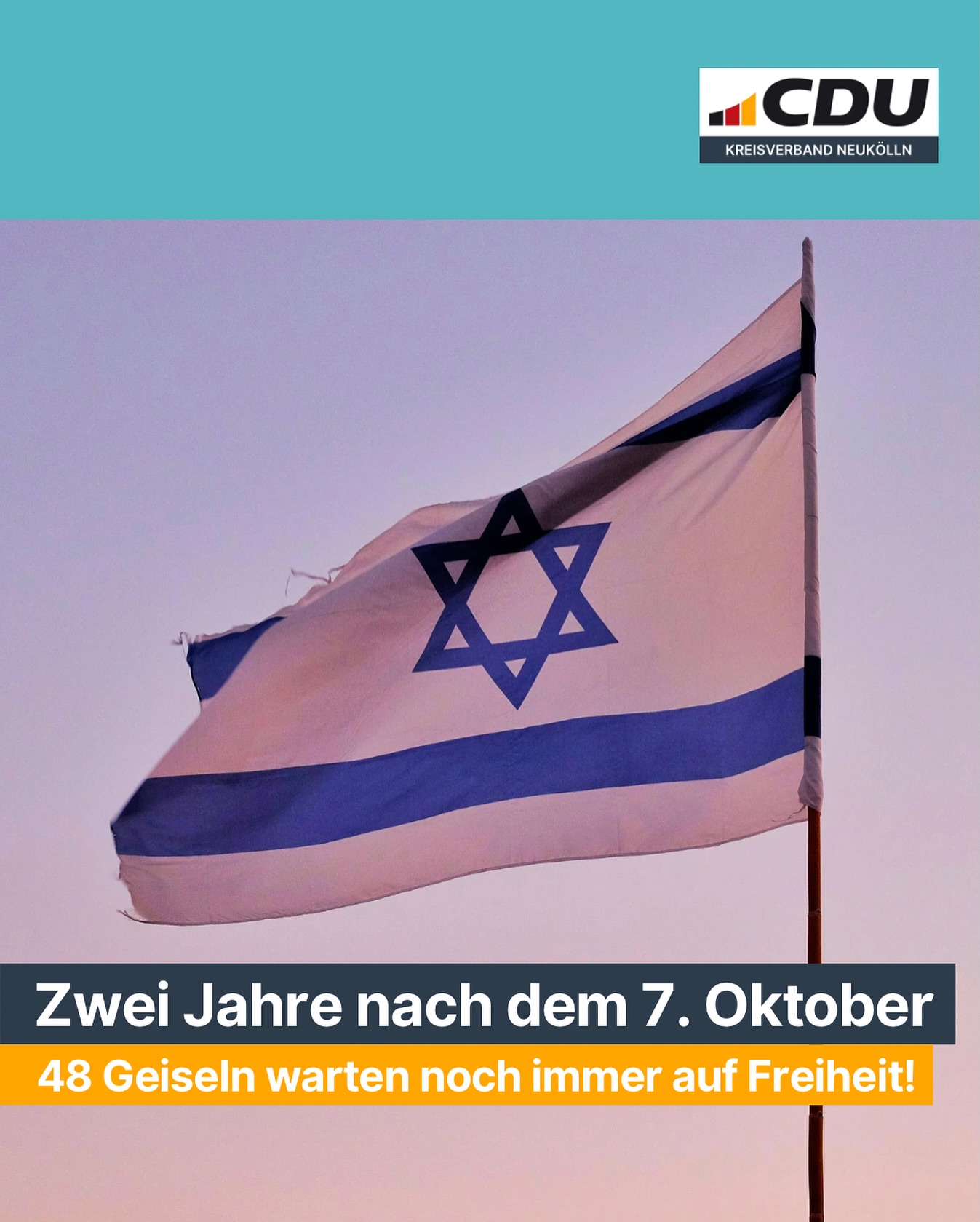 mehr🕯️Nie vergessen ? 7. Oktober 2023 Um 06:29 Uhr Ortszeit begann am 7. Oktober 2023 der barbarische Überfall 💥 der Hamas auf Israel. 🇮🇱 Was folgte, war der größte Massenmord an Juden seit dem Holocaust, über 1.100 Menschen wurden grausam ermordet, Hunderte verschleppt. 🕊️ Auch zwei Jahre später sind noch immer 48 Menschen in der Gewalt der Hamas, ihre Familien warten verzweifelt auf ein Lebenszeichen und hoffen auf ihre Rückkehr. 🖤 Wir gedenken den Opfern 🕯️ dieses entsetzlichen Terrors, den Menschen und Familien, die ermordet, verschleppt oder für immer auseinandergerissen wurden. Unsere Gedanken gelten allen, die an diesem Tag ihr Leben verloren 🕯️ haben und den Geiseln, die bis heute nicht in Freiheit sind. Israel 🇮🇱 kämpft seitdem um seine Existenz und es hat jedes Recht dazu. Das Recht ⚖️ auf Selbstverteidigung ist ein Recht auf Leben. 🚫 Für uns ist klar: Antisemitismus darf in Deutschland niemals geduldet werden! Nicht auf unseren Straßen, nicht an unseren Schulen, nicht in unseren Universitäten und nicht in unseren Parlamenten! 🇮🇱 Nie wieder ist jetzt. Wir vergessen nicht.🕯️ #cdu #cduneukölln #neukölln #dasbestefürneukölln #niewiederistjetzt #bringthemallhomenow🎗️